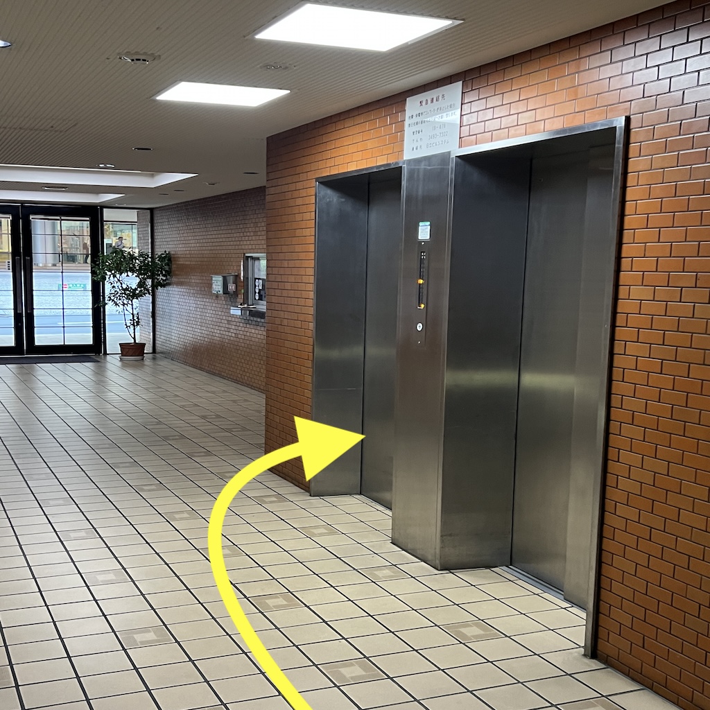7.エレベーターで9階へ。(*当建物はエントラスが二ヶ所あります。)